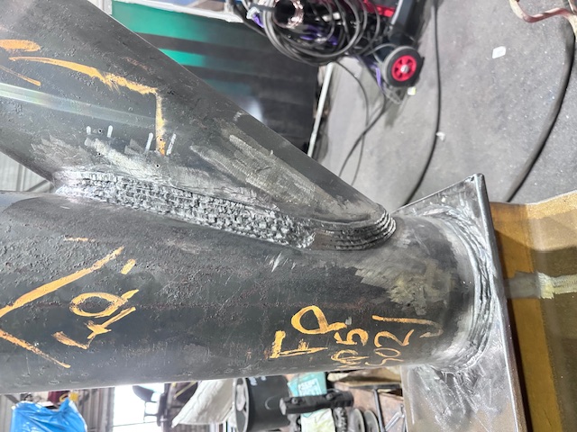 MIG lassen. Offshore project. voetsteun voor windmolens op zee.