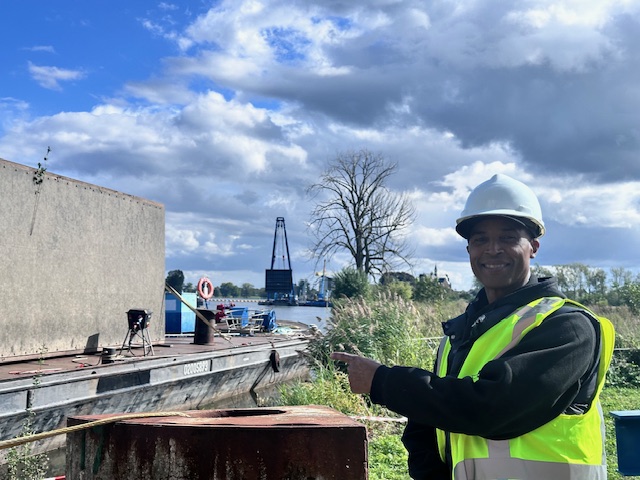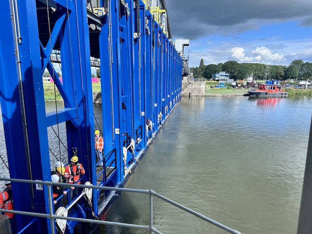 Stuw-grave. Rijkswaterstaat in opdracht Mourik BV. Brug werkzaamheden